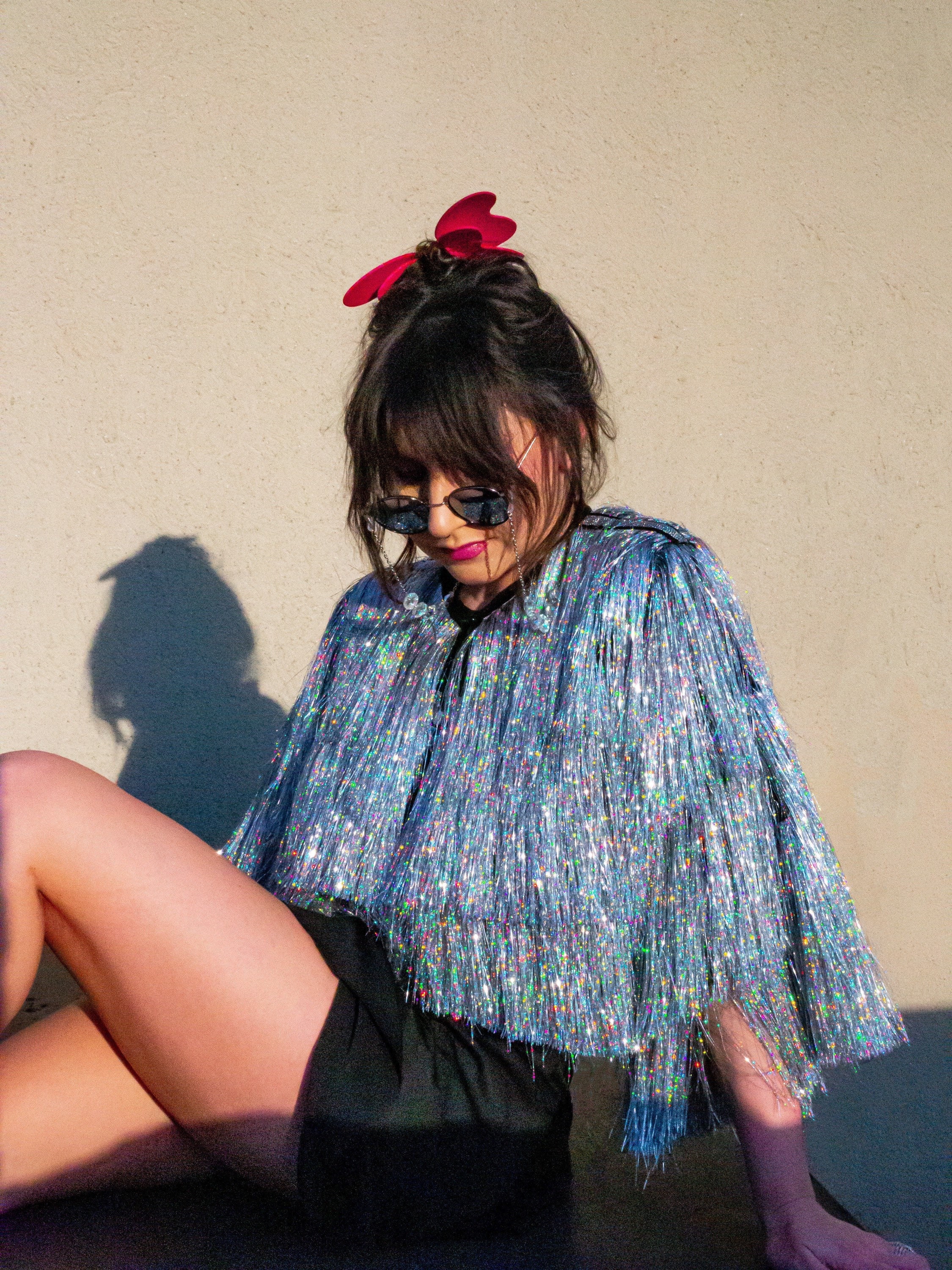 The jacket is cute but the tinsel began falling off as soon as it was unpackaged. The jacket can only be worn a handful of times before too much tinsel is gone.
