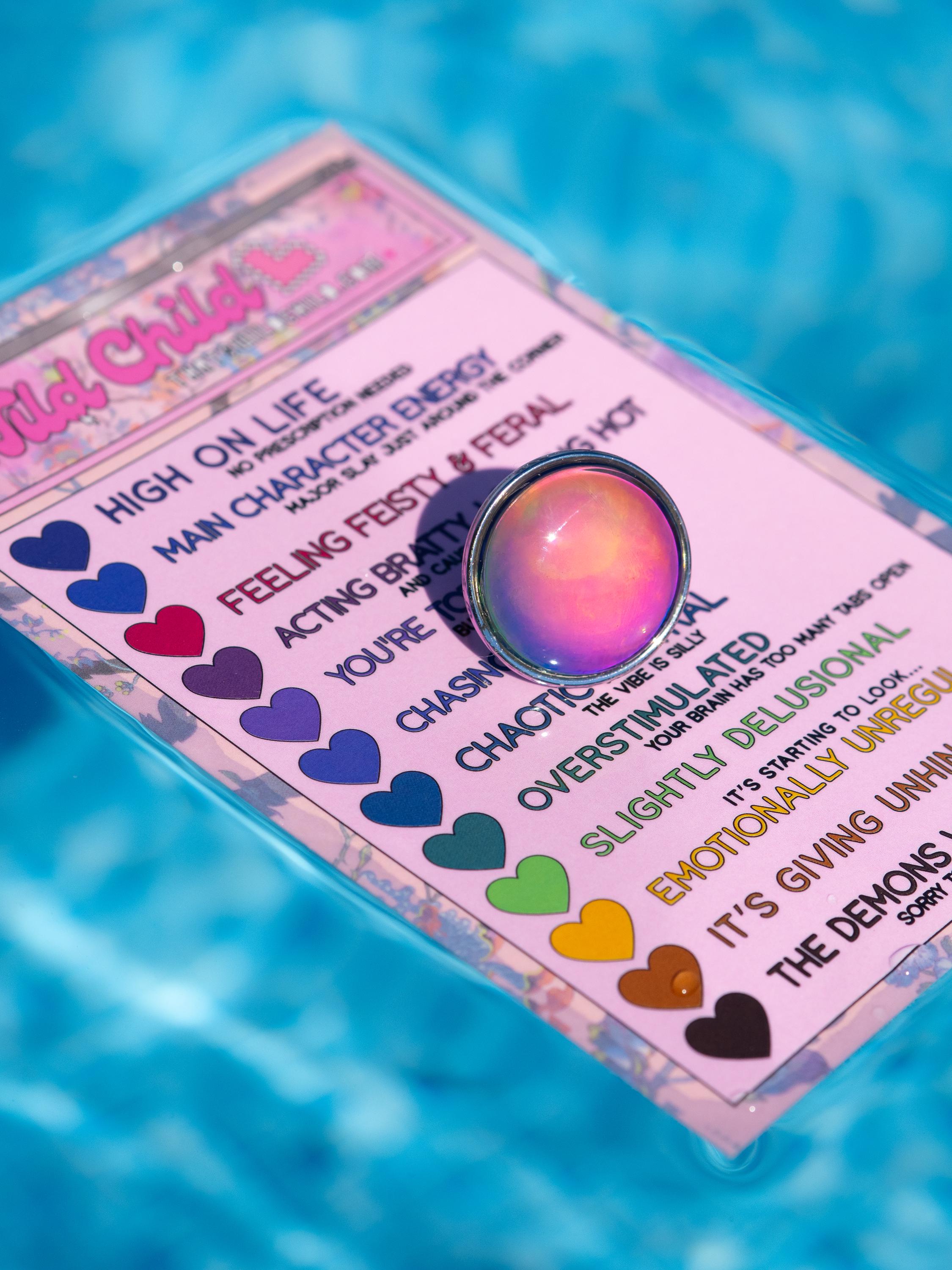 Each ring includes a Wild Child custom mood chart printed on premium paper, featuring highly scientific emotional states like: