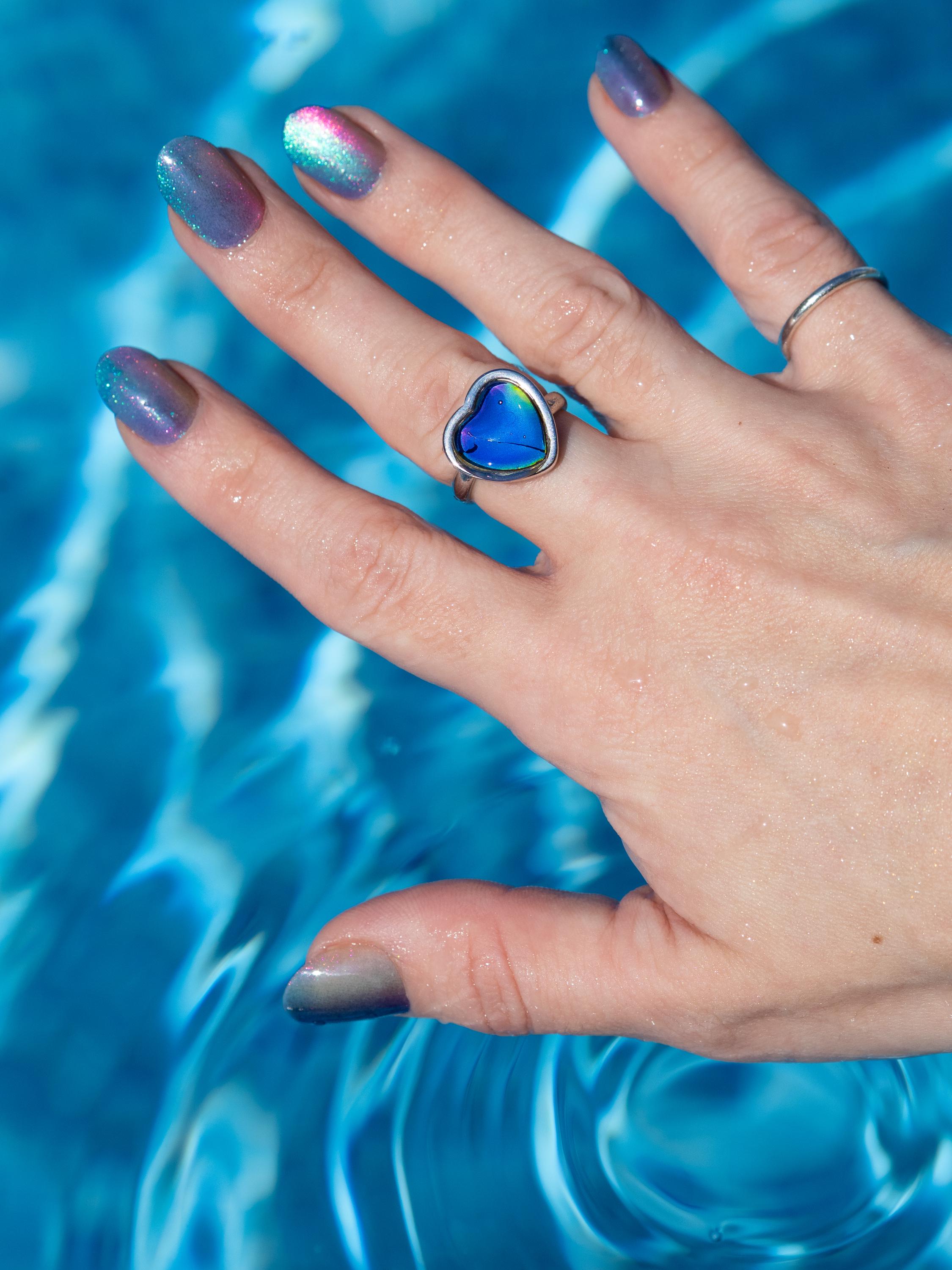 Waterproof Silver Heart Mood Ring: Hand Painted Stainless Steel, Adjustable
